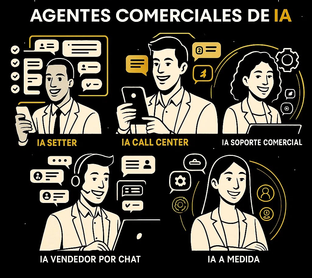 Implementamos Agentes de Inteligencia Artificial que prospectan, atienden llamadas, venden por chat y dan soporte a tus clientes, como un equipo humano… pero más rápido, más barato y siempre disponible.